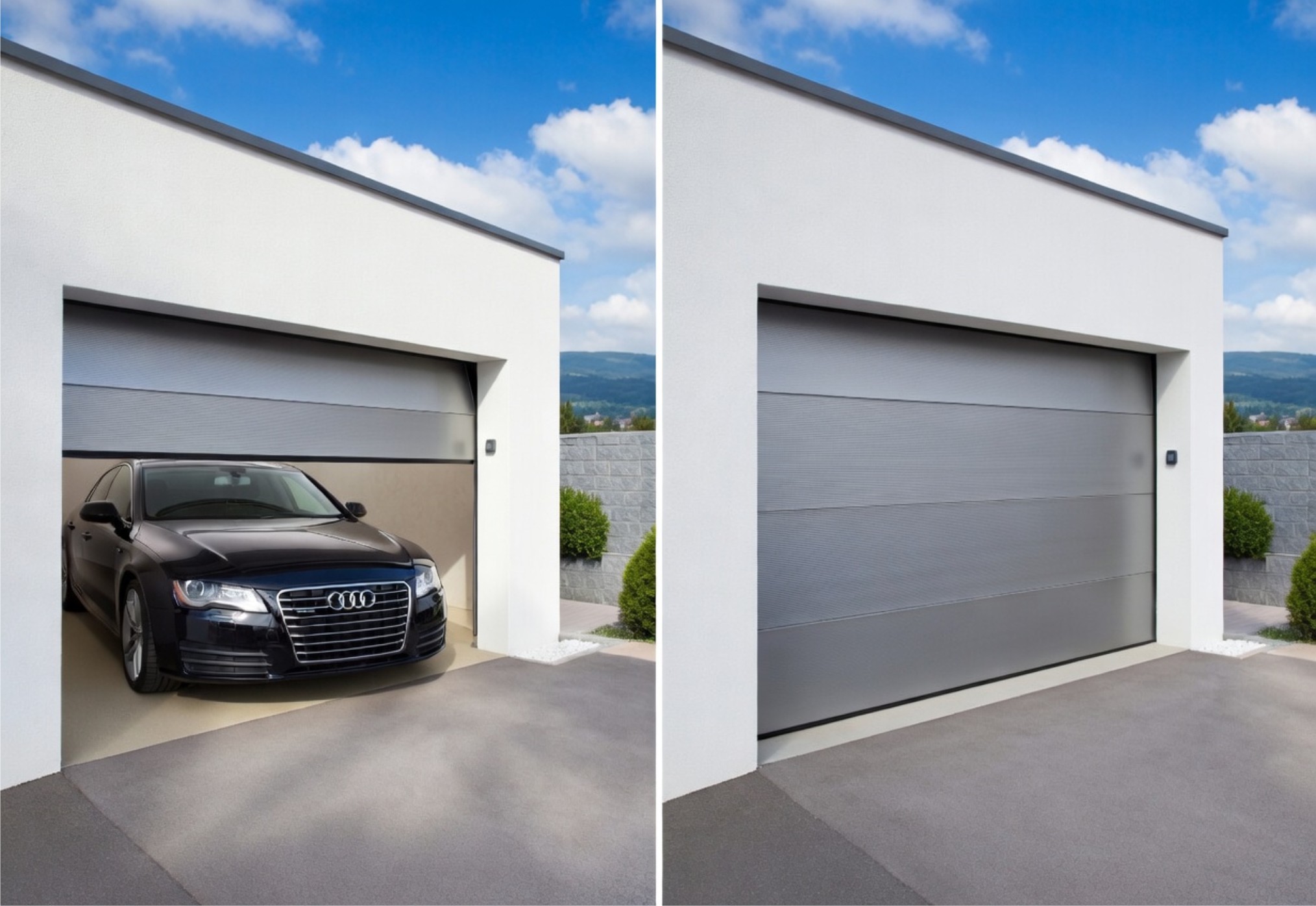 Disponíveis em versões seccionadas, de enrolar ou batentes, com acabamento personalizado e estruturas em aço ou alumínio de alta qualidade.